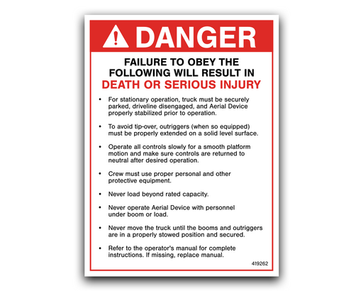 Fast Safety Decalsfrom as low as $2.38DANGER - Failure to obey the following will result in DEATH OR SERIOUS INJURY Premium vinyl laminated decals to protect from fading. Easy installa...