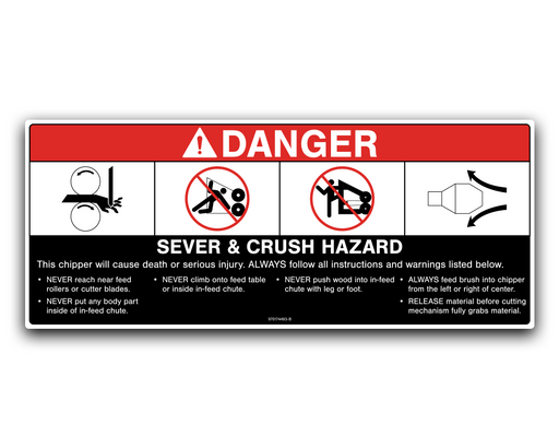 Fast Safety Decalsfrom as low as $8.58DANGER - SEVER & CRUSH HAZARD. This chipper will cause death or serious injury. Always follow instructions and warnings listed. Premium vinyl ...