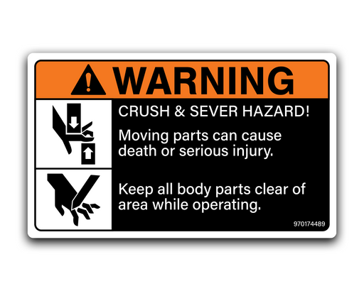 Fast Safety Decalsfrom as low as $1.68WARNING: CRUSH & SEVER HAZARD! Premium vinyl laminated decals to protect from fading. Easy installation: remove liner and apply to clean surfa...