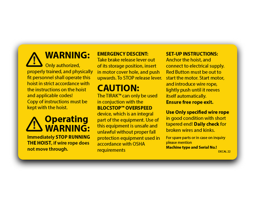 Fast Safety Decalsfrom as low as $2.00WARNING: Electric Hoist Premium vinyl laminated decals to protect from fading. Easy installation: remove liner and apply to clean surface. For ind...